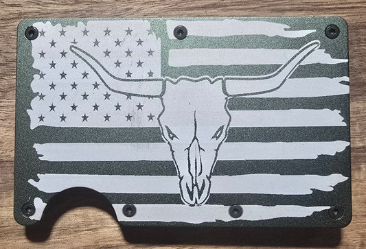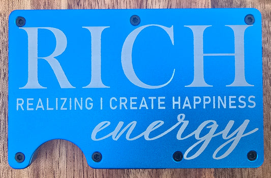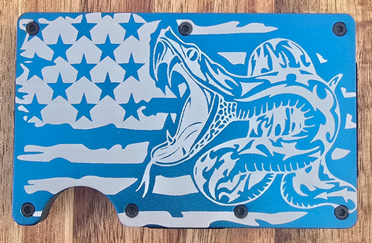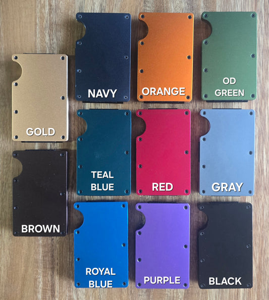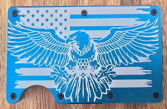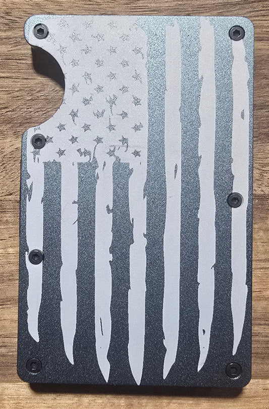 Slim, Minimalist Design, RFID-Blocking Aluminum Wallet with cash clip, Laser Engraved Designs. Holds 10+ cards.