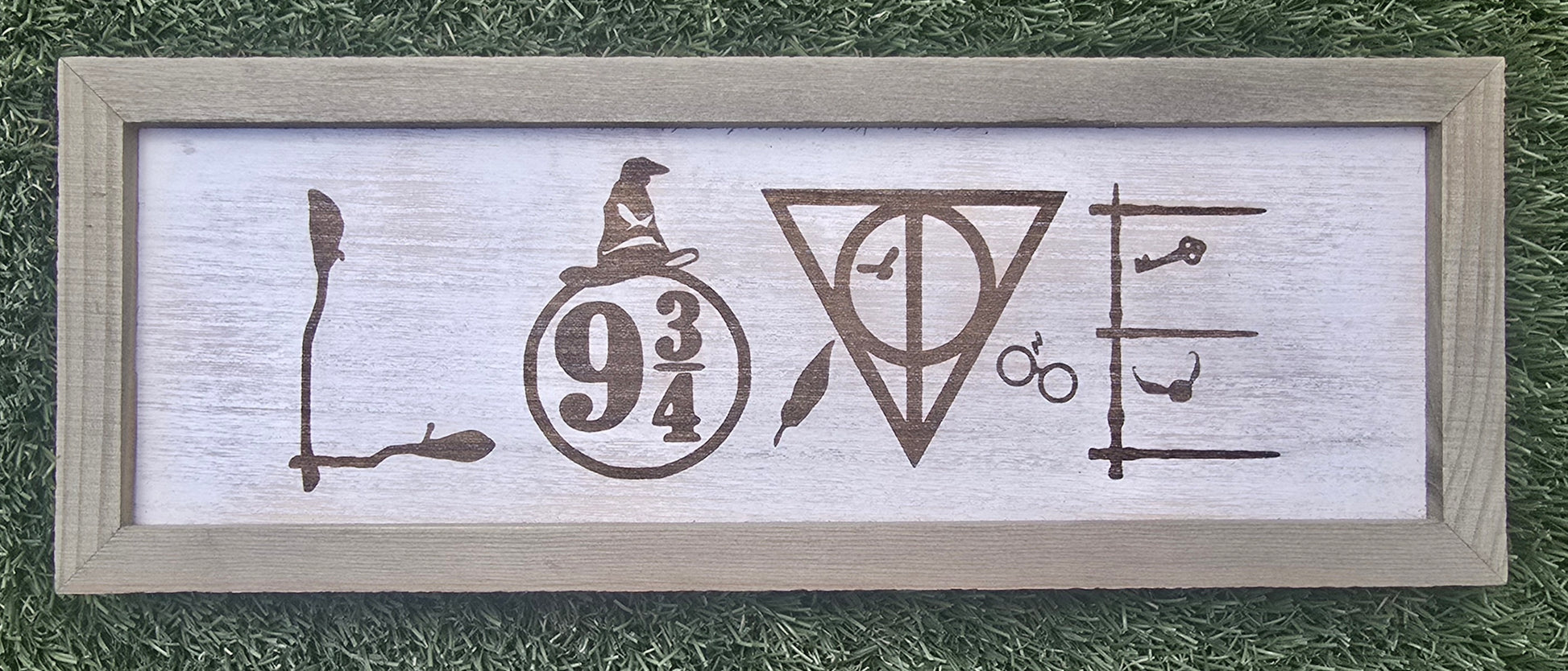 5.5" x 15" x 1" Whitewashed Framed Sign with Custom Laser Engraved Design.